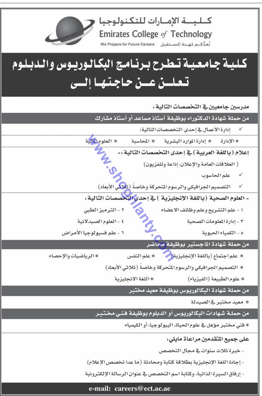 عاجل ..كلية الإمارات تعلن عن حاجتها لأعضاء تدريس