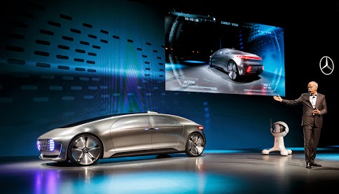 كشفت مرسيدس بنز النقاب عن سيارة مرسيدس- بنز إف 015 المستقبلية، في إطار السباق على لقب أول شركة تنتج سيارة تُقاد آليا بالكامل في المعرض السنوي لالكترونيات المستهلك في لاس فيجاس. وقدم ديتر تسيتشي، الرئيس التنفيذي لشركة دايملر، السيارة الفاخرة التي تعمل بخلايا الوقود مساء الاثنين الاثنين الماضي