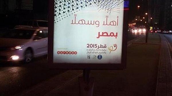 ووضعت قطر لافتات إعلانية على الطريق مكتوب عليها أهلا وسهلا بمصر.. قطر 2015.