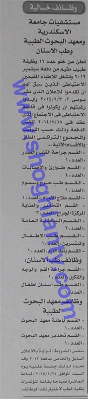 وظيفتك عندنا جامعة الاسكندرية تعلن عن وظائف شاغرة الأحد 11/يناير/2015 - 01:19 م facebook twitter whats x facebook twitter rss feed جامعة الاسكندرية تعلن عن وظائف شاغرة facebook twitter whats