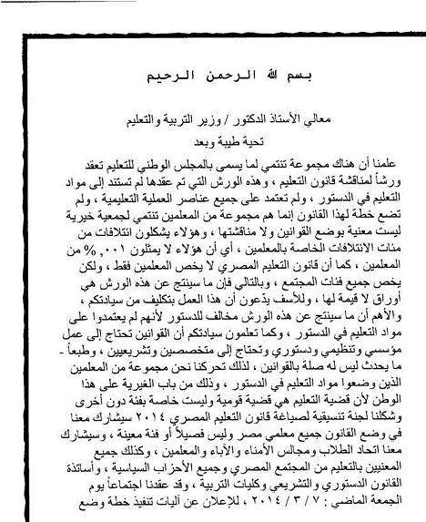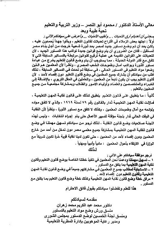 2 – هاجم محاولة تعديل المادة 89 ونكتشف في مراسلاته للوزير طلبا بعمل ورش عمل لتعديل قانون التعليم و قانون النقابة !! و كيف يراسل وزيرا لا يمثله لطلب أمرا يهاجم الوزير عليه .