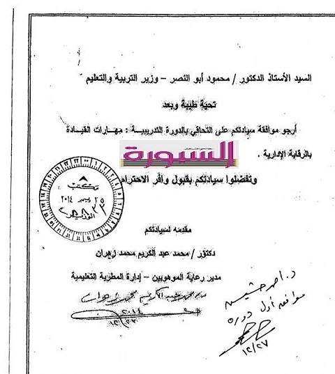 6 - طلب من الوزير التقدم لتدريب مهارات القيادة بالرقابة الادارية ووافق الوزير ولو كان الوزير يحمل له الضغينة لما وافق و لكن زهران خرج ببدعة أن الوزير عرض عليه منصب و أن موافقة الوزير رشوة