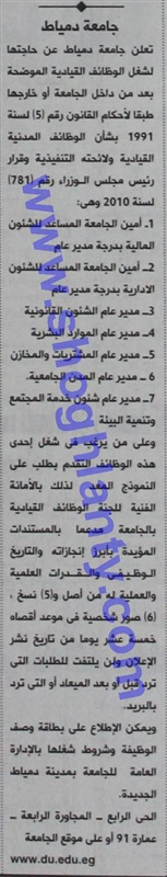 وظيفتك عندنا جامعة دمياط تعلن عن وظائف شاغرة الثلاثاء 13/يناير/2015 - 03:07 م facebook twitter whats x facebook twitter rss feed جامعة دمياط تعلن عن وظائف شاغرة facebook twitter whats