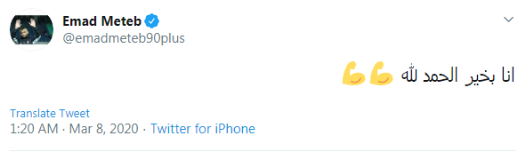 وكتب نجم الأهلي ومنتخب مصر السابق، عبر حسابه الرسمي على موقع التغريدات القصيرة "تويتر" في تعليق مقتضب: "أنا بخير الحمد لله".