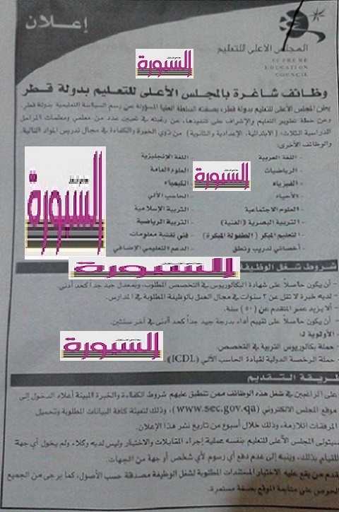 اعلن المجلس الاعلي للتعليم بدولة قطر عن فتح باب التسجيل للمعلمين في جميع التخصصات للعام الأكاديمي 2015 / 2016