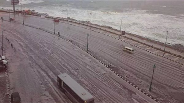 تراكمت الثلوج و مياة الامطار بالشوارع الرئيسية بالاسكندرية ، نتيجة لتساقط أمطار رعدية غزيرة تسببت في احداث حالة من الشلل المروري بطريق الكورنيش.