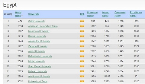 جامعة القاهرة فى ترتيب أفضل 500 جامعة عالميآ فى النسخة الأولى لتصنيف ويبوماتريكس الأسبانى لعام 2015