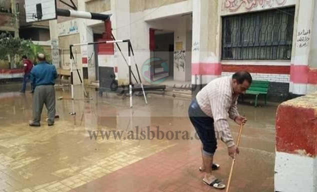 مدير مدرسة "أبو الجهود الابتدائية" يقوم بتنظف المدرسه ورفع الأمطار بالغربية.. صور