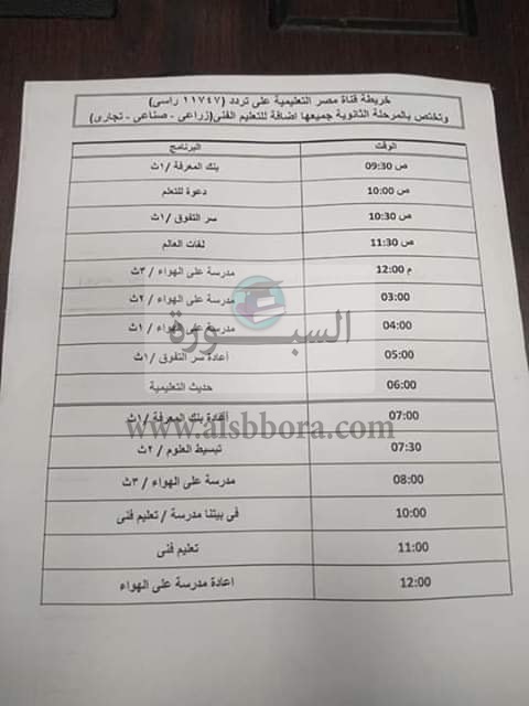 مواعيد البرامج التعليمية للمرحلة الثانوية والتعليم الفني على قنوات النيل التعليمية