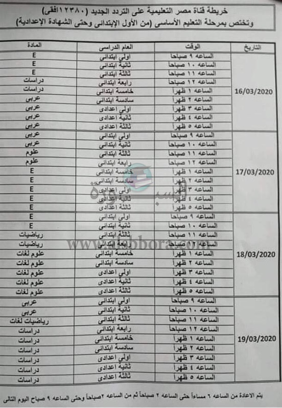 ينشر موقع السبورة مواعيد البرامج التعليمية للمرحلة الابتدائية والاعدادية على قنوات النيل التعليمية، بعد قرار مجلس الوزراء بتعليق الدراسة لمدة اسبوعين نظرا لتفشى فيروس كورونا القاتل.