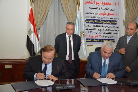 وقعت وزارة التربية و التعليم برتوكول تعاون مع مدارس طيبة المتكاملة الدولية بشأن تنفيذ التوأمة بين كل من مدرستى المتفوقين والمتفوقات فى العلوم والتكنولوجيا ومدارس طيبة، بحضور الدكتور محمود أبو النصر وزير التربية والتعليم، ومحمد سعد المشرف على قطاع التعليم العام، والدكتور صديق عفيفي رئيس مجلس إدارة مدارس طيبة المتكاملة الدولية.