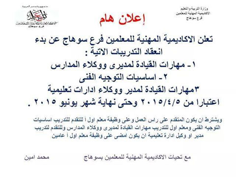 ننشر.. شروط الالتحاق بالدورات التدريبية في الاكاديمية المهنية للمعلمين بسوهاج