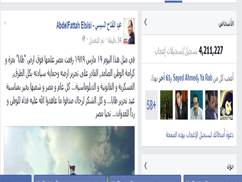 السيسي يحتفل بتحرير طابا عبر الـ "فيس بوك" ويتجاهل دور مبارك