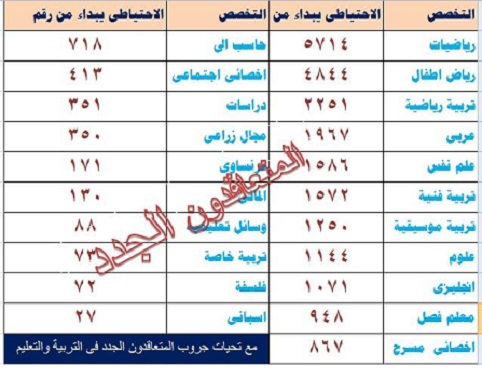 " السبورة " تنشر الارقام التي يبدأ بها الاحتياطي في كل التخصصات ، والارقام السابقة لذلك هي ضمن الاساسي والتي يحق لها التعيين