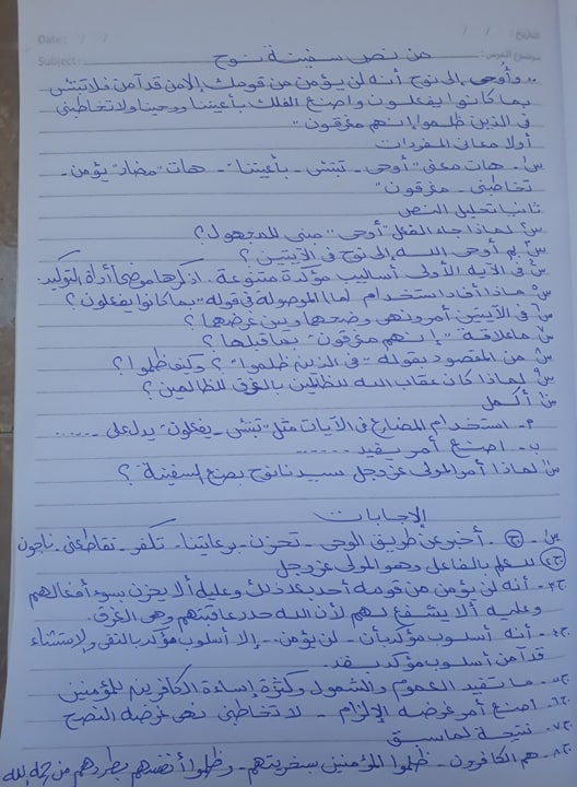 11 سؤالا وجوبا من نص سفينة نوح للشهادة الاعدادية لن يخرج عنها الامتحان الترم الثانى