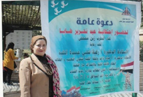 بينما أوضحت الدكتورة هيام الزاهد وكيلة الكلية لشئون التعليم والطلاب فى كلمتها على ان مواكبة الإحتفالية للمؤتمر الإقتصادى بشرم الشيخ يدعو للتفاؤل وتحدثت الطالبة اية مرتضى رئيسة إتحاد الطالبات فى كلمتها على حول مدى أهمية هذا اليوم فهو يمثل إكتمال فرحة المصريين بعودة طابا إلى مصرنا الحبيبة لتصبح ارض سيناء بالكامل ارض مصرية .