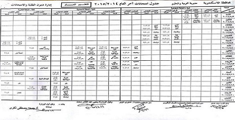 اعتمد جمعة زكري وكيل اول وزارة التربية والتعليم بالإسكندرية، مواعيد امتحانات الشهادات الابتدائية والاعدادية والثانوية .