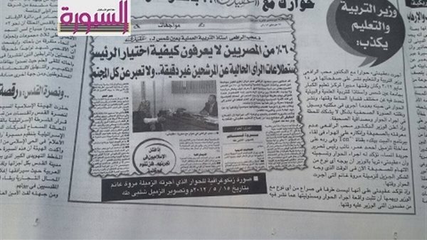 ** لقد استمعت لبرامج بعض مرشحي الرئاسة علي الفضائيات ووجدتهم جميعاً بلا استثناء يضعون التعليم في المرتبة الأولي ويوجهون له ميزانية كبيرة ويخصصون للمعلم أعلي الرواتب فمعظمهم يخصص للتعليم 10 في المائة من ميزانية مصر إلا أن الدكتور عبدالمنعم أبوالفتوح أعلن أنه سيخصص 25% من الميزانية للتعليم وهذا شيء مبشر ويدعو للتفاؤل أن يكون مرشحو الرئاسة ملتمسين أهمية التعليم وانهياره ويضعونه في أولوياتهم وإن لم يفعلوا ذلك أخطأوا هذا من ناحية ومن ناحية أخري فأياً كان الرئيس الذي سيفوز فإن لم يحقق ما طرحه في برنامجه سيحاسبه الشعب لذا لابد من تفعيل المحاسبة الشعبية لرئيس الجمهورية ليكون علي قدر المسئولية ويحترم الشعب الذي اختاره.