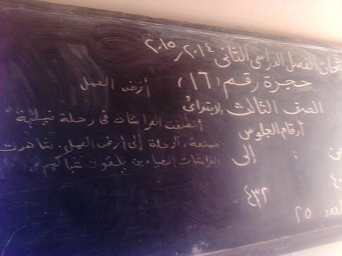 حيث قال احد تلاميذ الصف الثالث الأبتدائى بالمدرسة ، عدد من زملائى قاموا بكتابة قطعة الاملاء الخاصة بمادة اللغه العربية على السبورة بقصد اللهو واللعب فى اخر يوم بالامتحانات بعد انصراف المعلمين