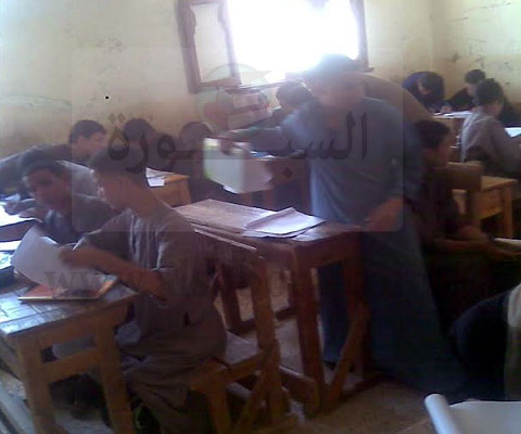 حيث قام الملاحظ داخل اللجنة بالإجابة عن اسئلة الامتحانات بدلا من الطلبة دون رقابة في معهد أزهري دار السلام .