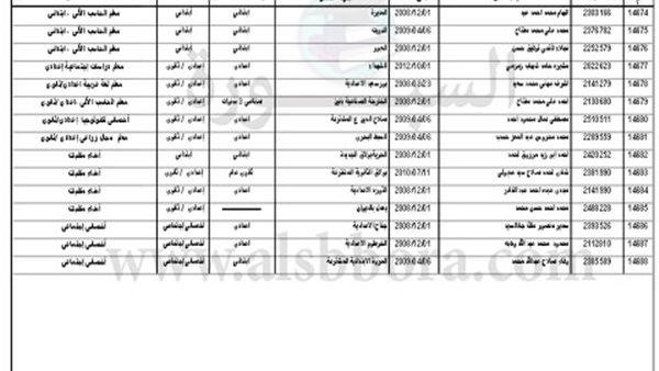 "السبورة" تنشر أسماء الذين تم تعيينهم علي درجة "معلم "بمحافظة الوادي الجديد