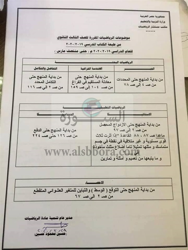 وسوف يجرى تعديل الوضع النسبى للموضوعات التى تأتى منها أسئلة الثانوية العامة بعد تحديد الجزء المقرر من المنهج حتى 15 مارس طبقًا للخريطة الزمنية للمناهج.