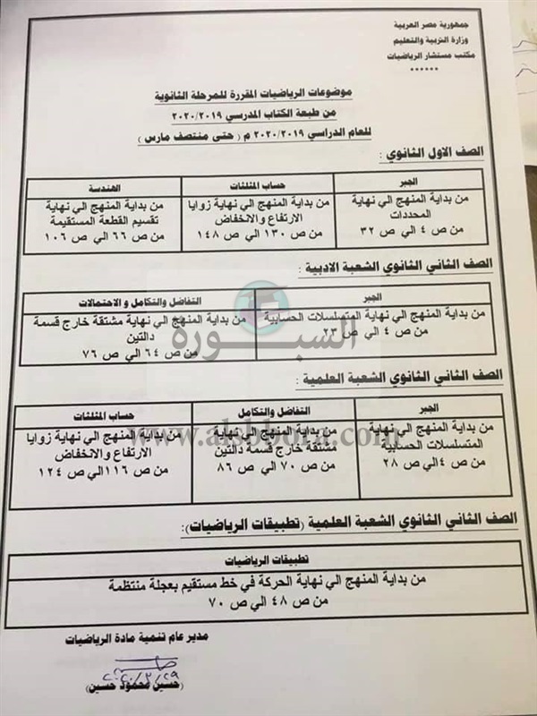 عاجل| التعليم تعلن عن الموضوعات المقررة بمنهج الرياضيات للصفوف من الأول حتى الثالث الثانوى