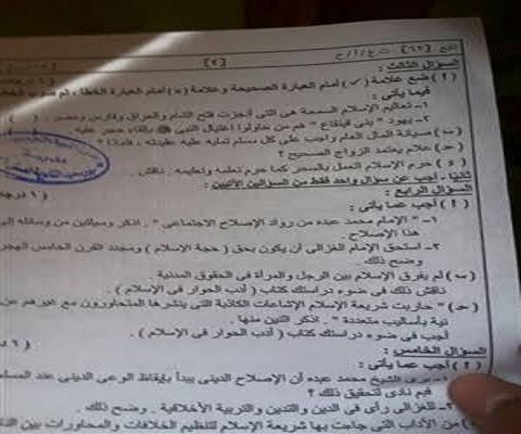 قام النشطاء على مواقع التواصل الاجتماعي "فيس بوك" بتداول ورقة أسئلة امتحان التربية الدينية لطلاب الصف الثالث الثانوي "نظام حديث"، بعد عشر دقائق من بدء اللجنة.