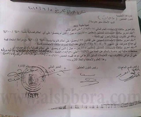 ننشر.. التعليمات الجديدة لصرف مكافأه الامتحانات للعام المالى 2014/2015