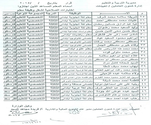 بالاسماء.. ترقية 185 معلم من وظيفة معلم مساعد الي وظيفة معلم بدمياط