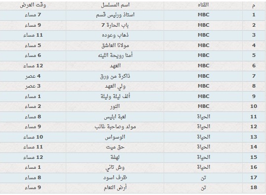تعرف علي مواعيد برامج و مسلسلات رمضان