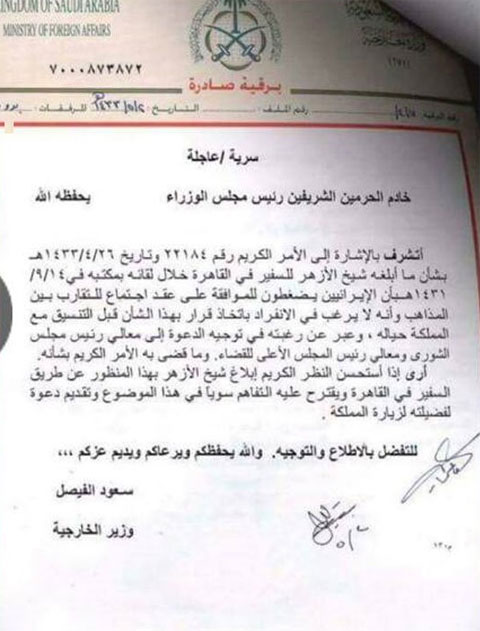 ياتي ذلك كأول رد فعل رسمي من مشيخة الأزهر الشريف، حول إحدى وثائق ويكيليكس المسربة مؤخرًا، والتى ذكرت أن شيخ الأزهر يتعرض لضغوط إيرانية من أجل عودة الحوار بين المذاهب، وأنه لا يريد الانفراد بهذا القرار قبل التنسيق مع المملكة العربية السعودية.