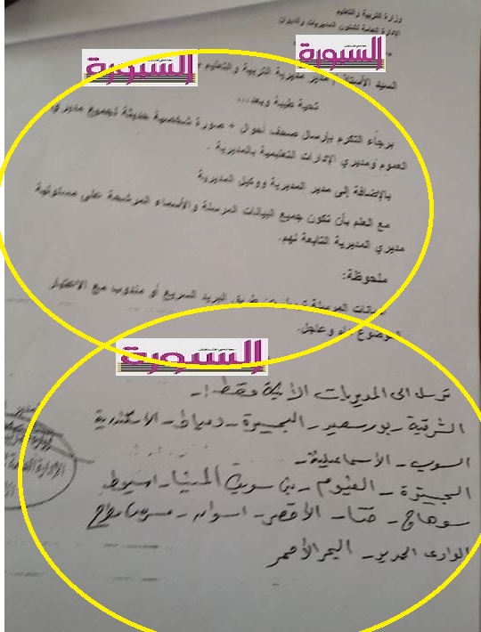 مع العلم بأن تكون جمبع البيانات المرسلة و الأسماء المرشحة علي مسؤلية مديري المديرية التابعة لهم.
