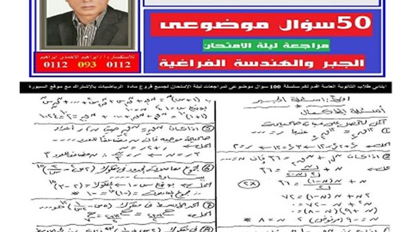 مراجعة ليلة امتحان في الجبر و"الهندسة الفراغية " واهم 50 سؤالا ..الجزء الاول