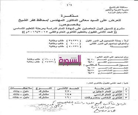 ننشر ..تنسيق القبول بالثانوي العام والفني بمحافظة كفر الشيخ