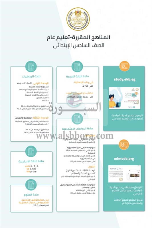 عاجل| وزير التربية والتعليم يعلن عن المناهج المقررة على الصف السادس الابتدائي في الفصل الدراسي الثاني.. "مستند"