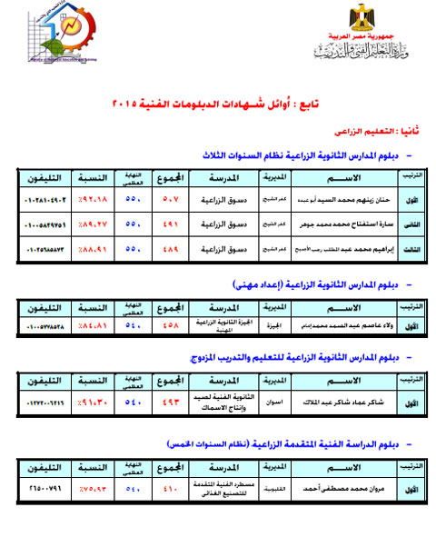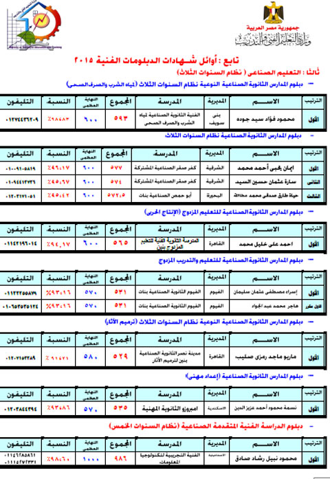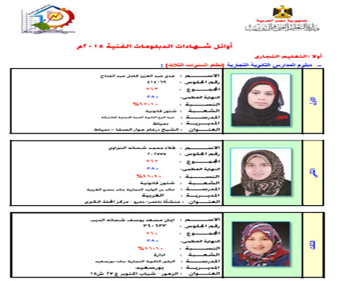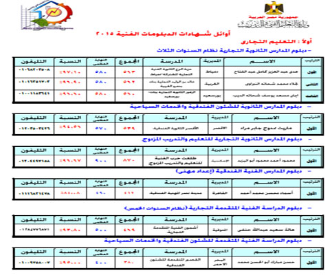 ننشر.. أسماء أوائل الدبلومات الفنية على مستوى الجمهورية