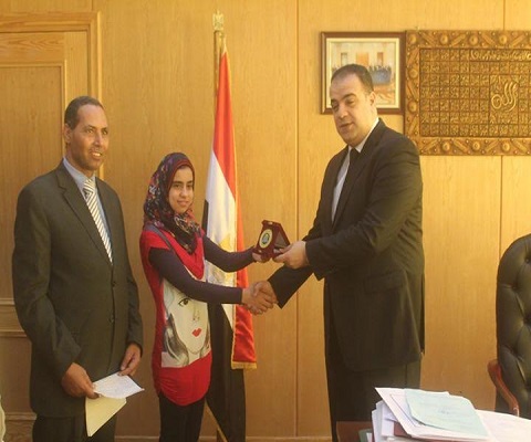 كرم الطالبة إسراء مصطفى عثمان لحصولها على المركز الأول على مستوى الجمهورية فى امتحان دبلوم المدارس الثانوية الفنية الصناعية للتعليم والتدريب المزدوج، والطالبة هاجر محمد عبد الجواد لحصولها على المركز الأول مكرر، كما قام بتكريم الطالبة أسماء جمال محمد حميدة الثانية مكرر على مستوى الجمهورية بقسم التبريد والتكييف نظام الثلاث سنوات.