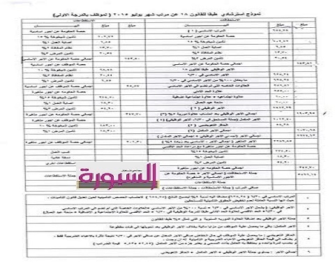 وذالك بعد مقارنة صافى الأجر فى 30 يونيو 2015 وصافى الأجر المعدل بعد تحويل كافة النسب لقيم مقطوعة وصولا للأجر الوظيفى والمكمل على النحو المشار إليه.