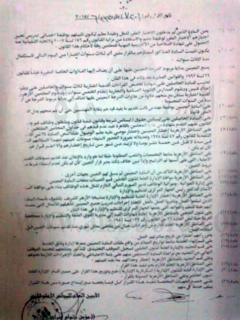 ننشر.. قرار تثبيت معلمي المعاهد الأزهرية بوظيفة اخصائى تدريس