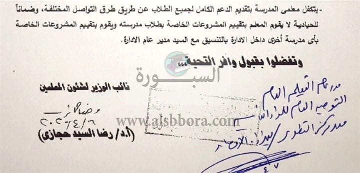 ارسلت وزارة التربية والتعليم والتعليم الفنى، كتابا دوريا مهما الى جميع مديريات التربية والتعليم على مستوى الجمهورية يتم توزيعه على مديرى المدارس بشأن المعلمين.