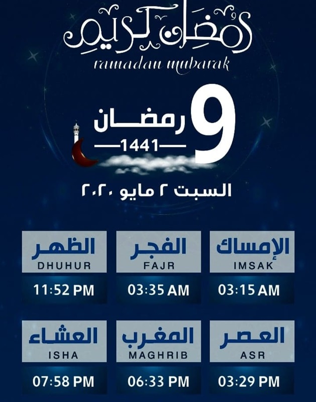 مواقيت الصلاة اليوم التاسع من شهر رمضان