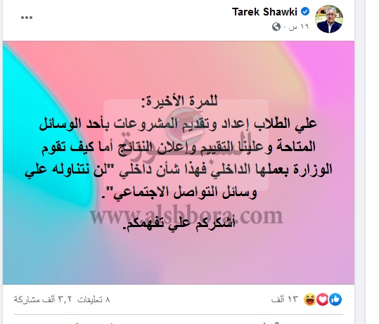 أصدر الدكتور طارق شوقي وزير التربية والتعليم تحذيرا أخيرا بشأن المشروعات البحثية للطلاب والذي تضمن الآتي:-