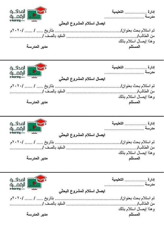 نشر نشطاء التعليم على موقع التواصل الاجتماعى "فيسبوك" نموذج ايصال استلام المشروع البحثى لطلاب المدارس، والذى يعتبر بديلا عن امتحانات الترم الثانى من صفوف الثالث الابتدائى الى الثالث الاعدادى.