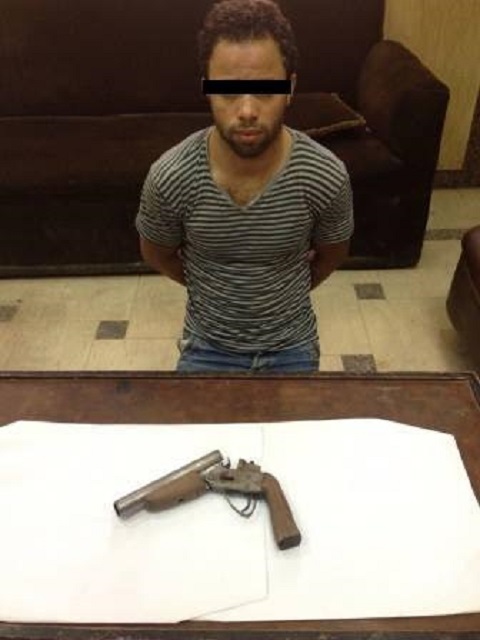 قناوي . أ . م . سن 25 عاطل ومقيم عرب الكلابات وبحوزته بندقية خرطوش تركى الصنع تحمل رقم 2241/14 على جسم السلاح