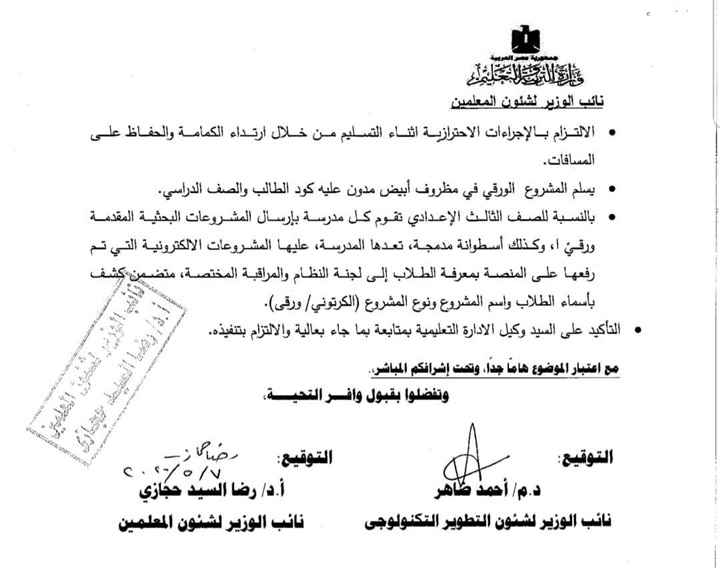 عاجل.. التعليم تصدر بيان جديد بشأن تسليم الطلاب للابحاث.. مستند