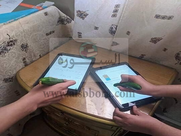طلاب الصف الثانى الثانوى يكتبون على التابلت اثناء الامتحان بالجزر والفلفل والخيار.. اختبار سلطة خضراء.. صور