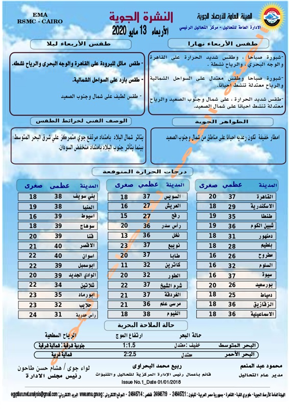 كما يتوقع الخبراء أن يشهد شمال الصعيد طقس مشمس شديد الحرارة، فيما يشهد جنوب الصعيد طقس شديد الحرارة مشمس والرياح معتدلة.