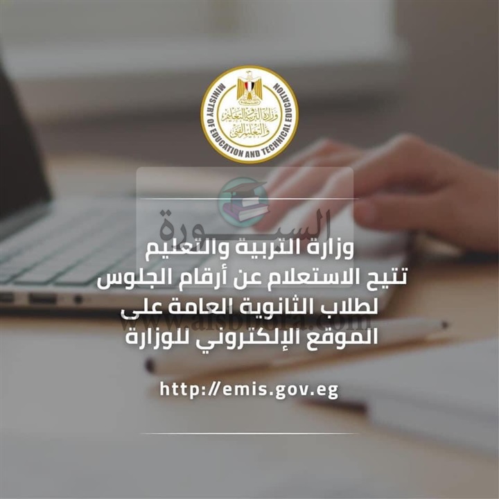 حيث أعلنت وزارة التربية والتعليم والتعليم الفني، عن إتاحة الاستعلام عن أرقام الجلوس للطلاب المتقدمين لأداء امتحانات شهادة الثانوية العامة، على الموقع الإلكتروني للوزارة http://emis.gov.eg ، وذلك بدءً من اليوم الاثنين الموافق ١١ مايو٢٠٢٠.
