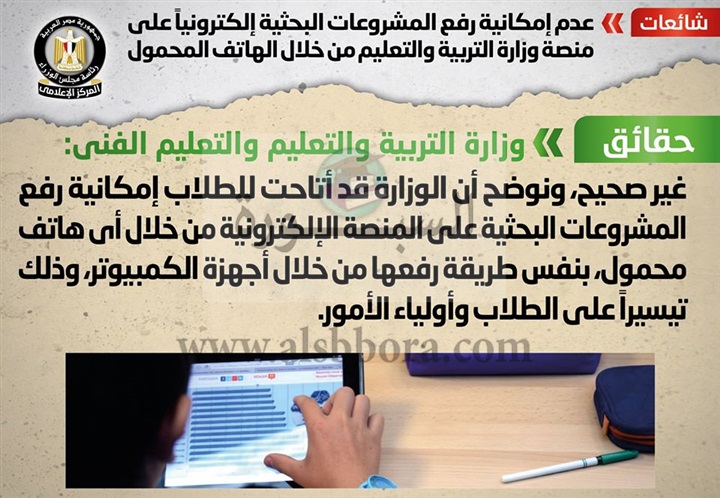 أصدرت وزارة التربية والتعليم تنبيها هاما للطلاب بشأن "رفع المشروعات البحثية إلكترونيا" والذي تضمن الأتي:-